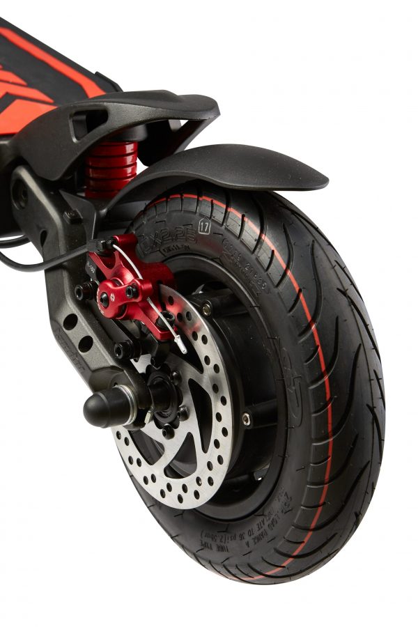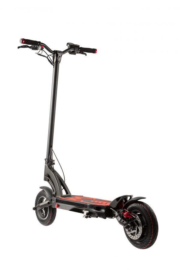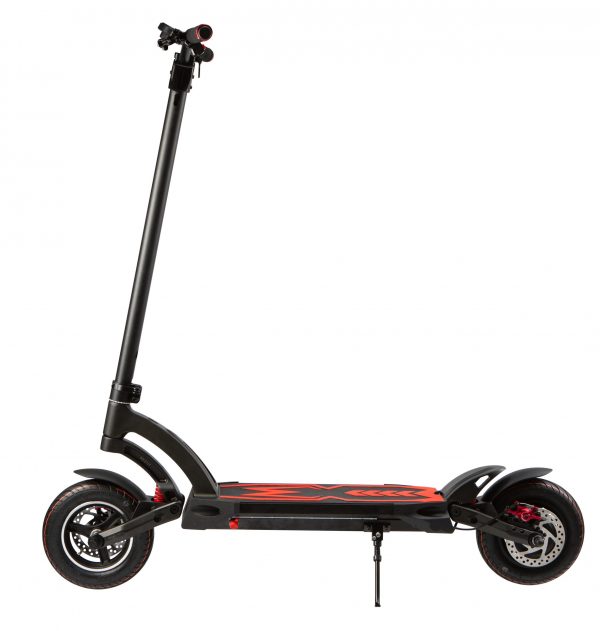 Electric scooter performa tinggi dengan dua motor listrik, akselerasi cepat dan tenaga yang kuat, dilengkapi dengan baterai kapasitas tinggi dari LG yang dapat mencapai 80 km. Fitur-fitur Kaabo Mantis Dual Motor: – Dual motor bertenaga besar, 60 volt 2 x 1000 watt – Baterai LG kapasitas besar 60V 24.5Ah, jarak tempuh sampai 75 km dengan eco/single drive – Kecepatan maksimum 70 km/jam – Dilengkapi dengan hydraulic brakes depan belakang memastikan keamanan dan akurasi pengereman – Lampu LED depan, LED samping dan belakang untuk penerangan di malam hari – Display dan controller diproduksi oleh Minimotors, produsen Dualtron electric scooter
